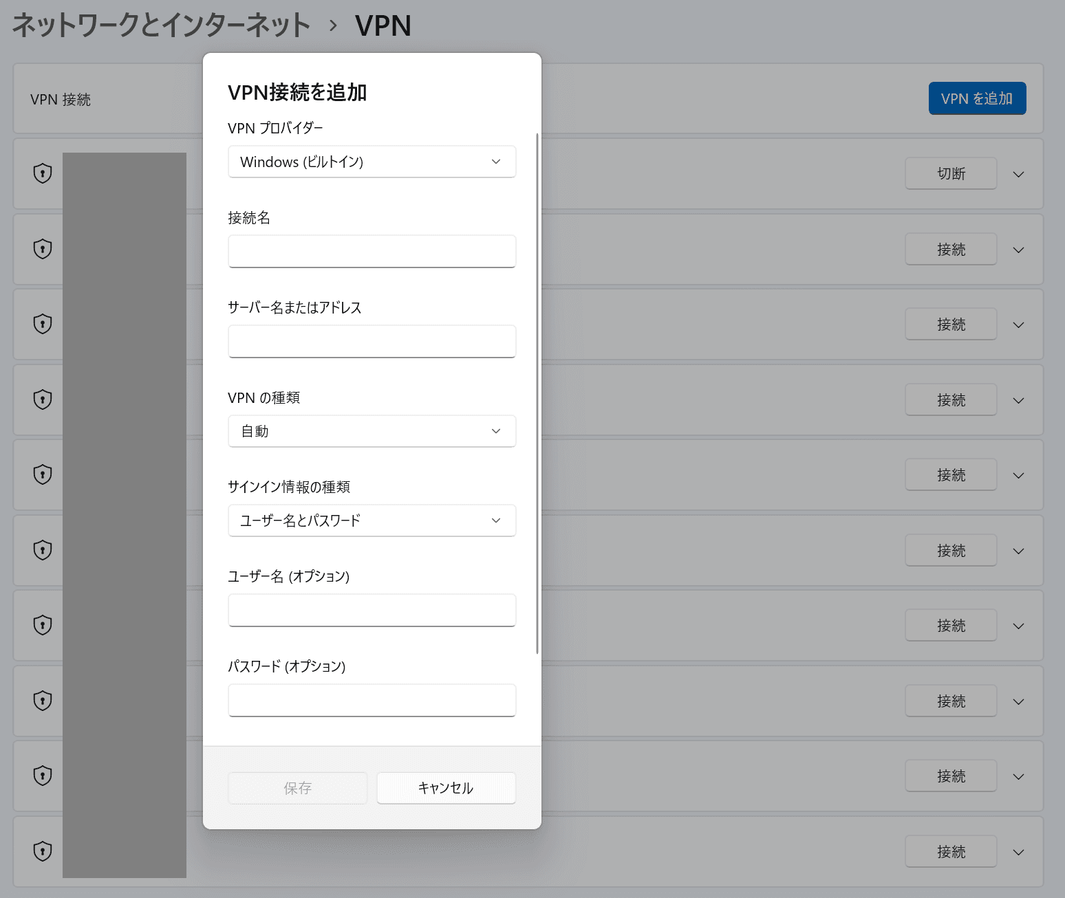 | アプリのアイコン | ![]() | 専用アプリはございません。 PC内の設定 >「ネットワークとインターネット」>「VPN」から設定します。 | ![]() |