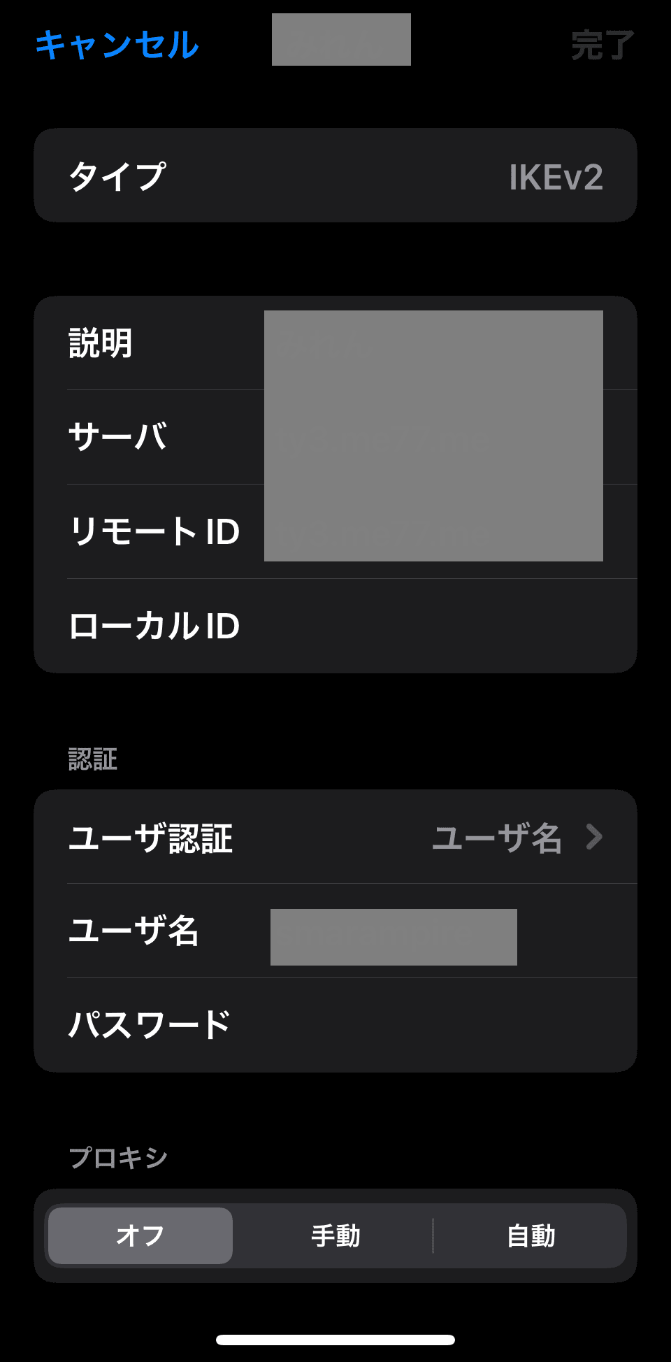 - MillenVPN Native / MillenVPN Native OpenConnectをご利用の場合、接続サーバーアドレスが確認できる設定画面のスクリーンショット