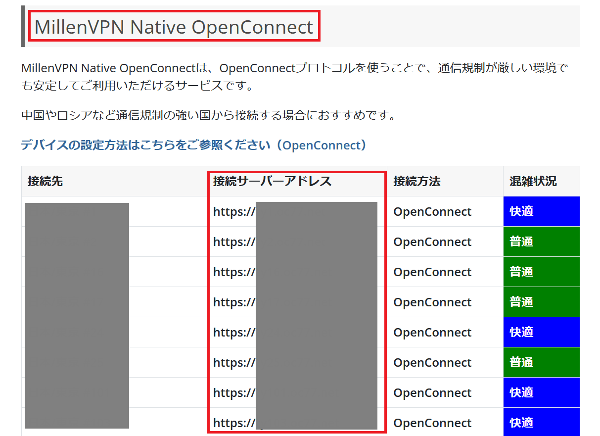 We have received many cases where the addresses of "MillenVPN Native" and "MillenVPN Native OpenConnect" have been entered incorrectly. Please be sure toServer address of "MillenVPN Native OpenConnectcorrectly.