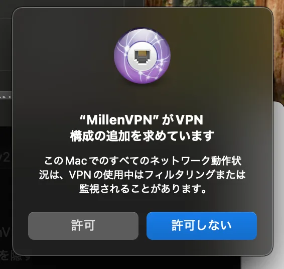 ▼ 如何設定網路分機與 WireGuard 連線 [Mac] https://support.millenvpn.jp/3215