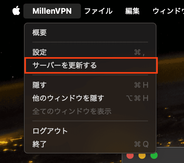 按 MillenVPN> 更新伺服器資訊,然後嘗試連線。