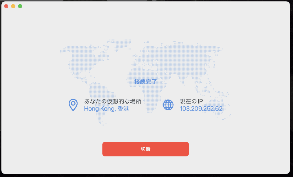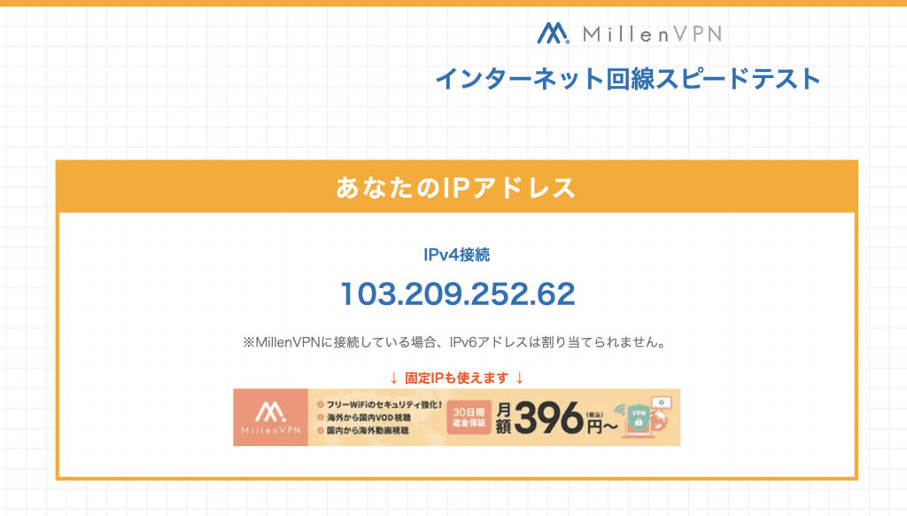如果 MillenVPN 的「目前 IP」和網站上顯示的 IP 位址相同,表示 VPN 連線成功。VPN 連線已成功建立。